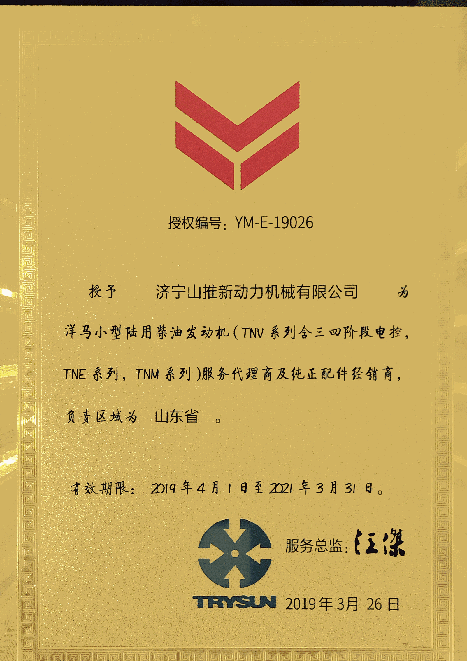 洋馬授權證書