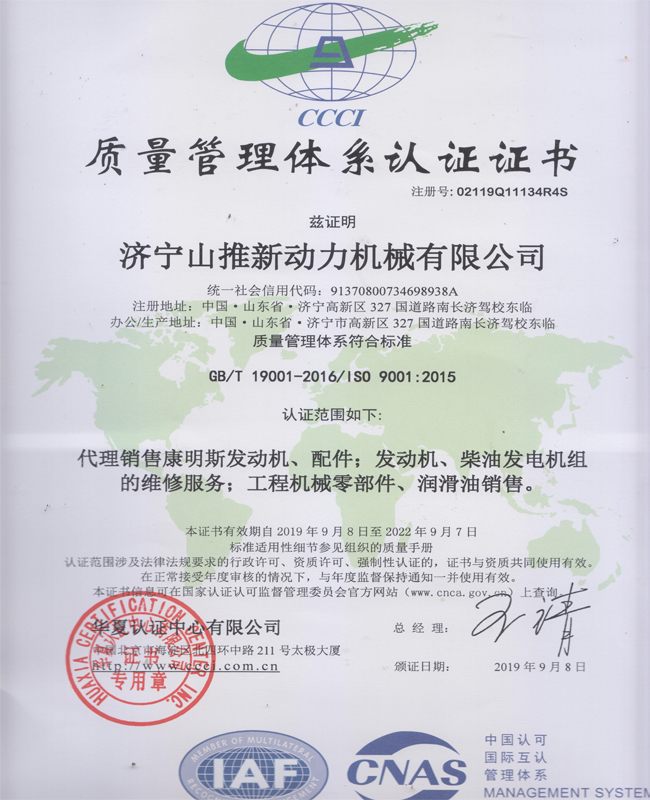 2018年重慶康明斯授權證書